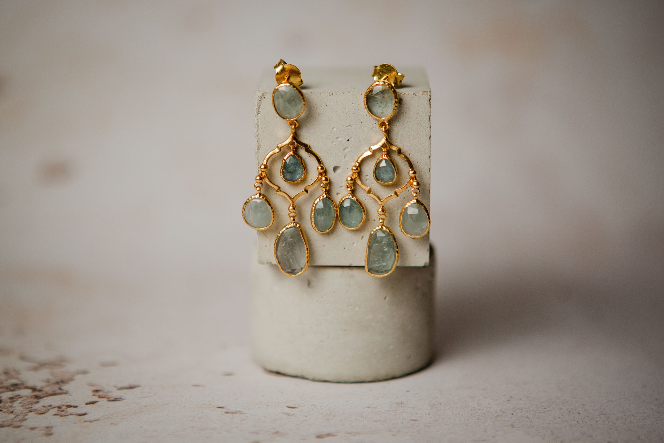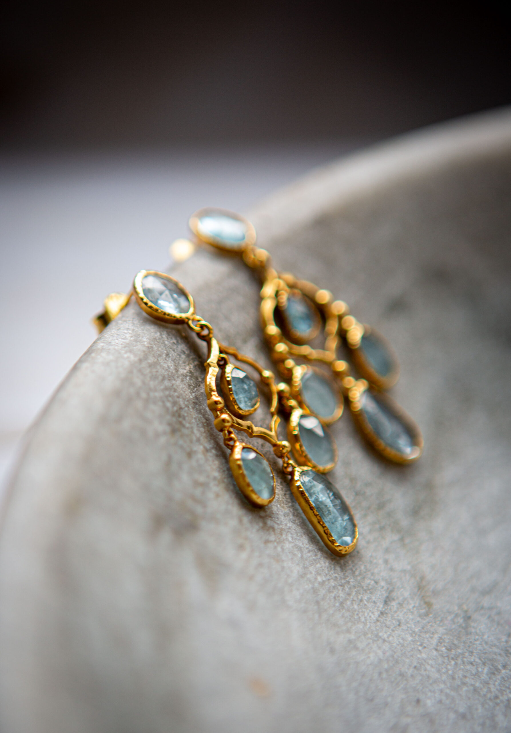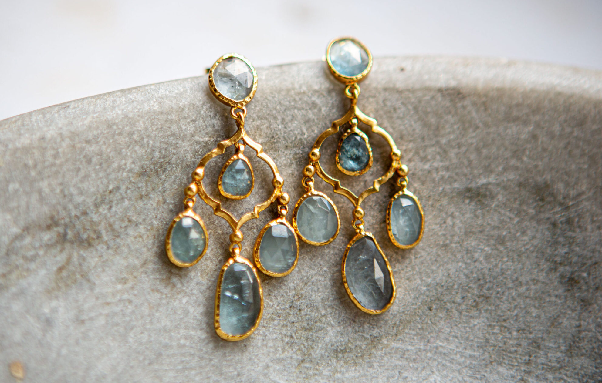A stunning pair of aqua marine chandelier earrings in the most beautiful soft aqua colour. These are a real showstopper!