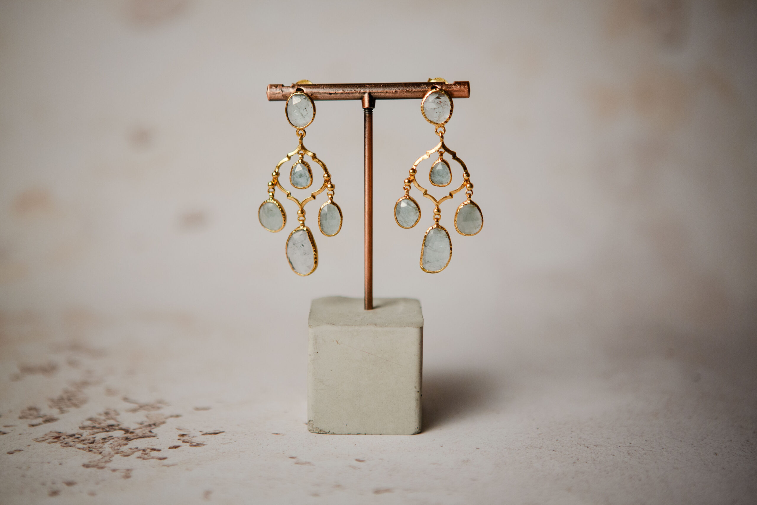 The lovely rose cut aquamarine gemstones have been handpicked for their pretty colour. The stones are irregular in shape with natural inclusions giving the earrings a wonderful sense of uniqueness.