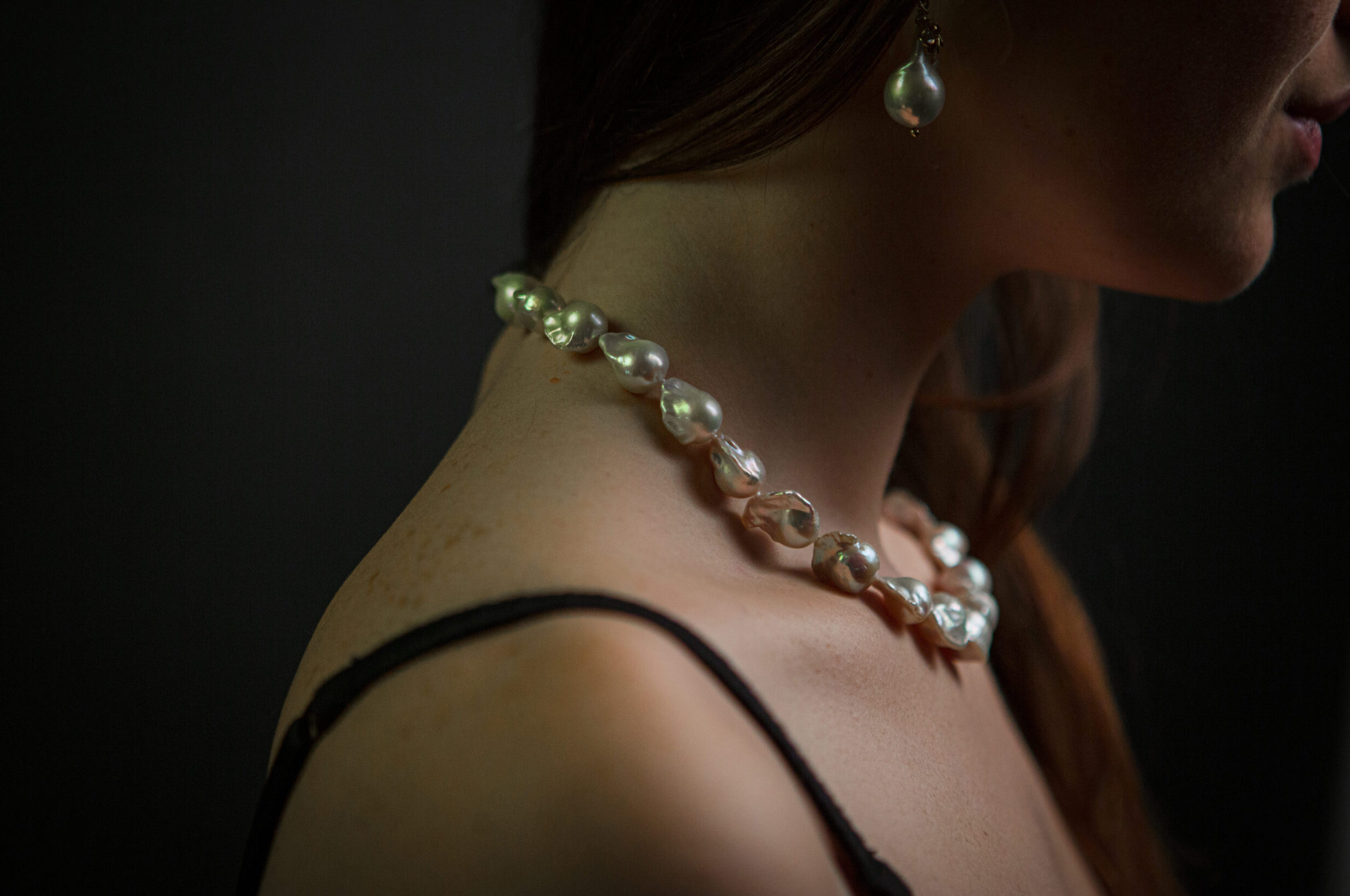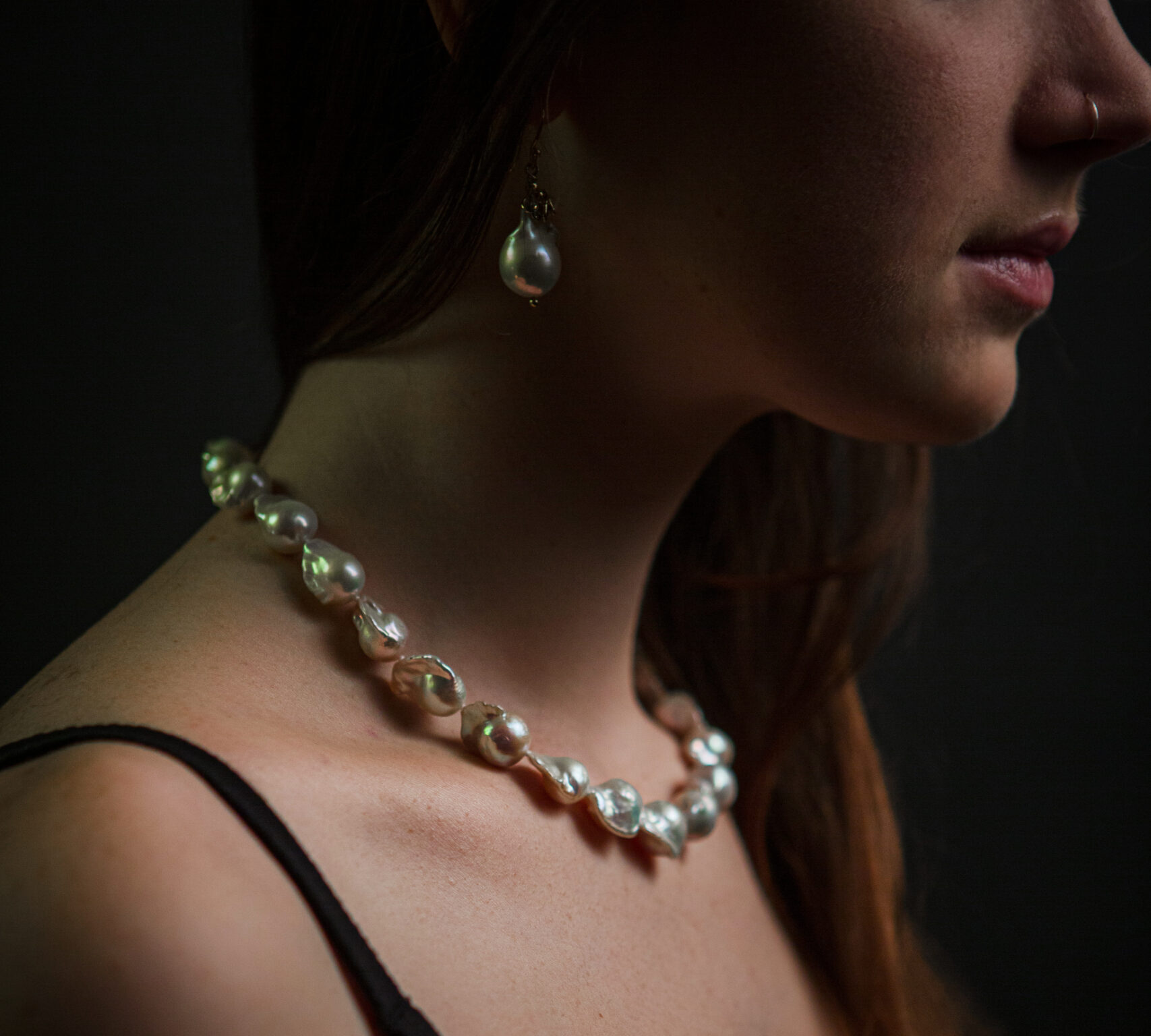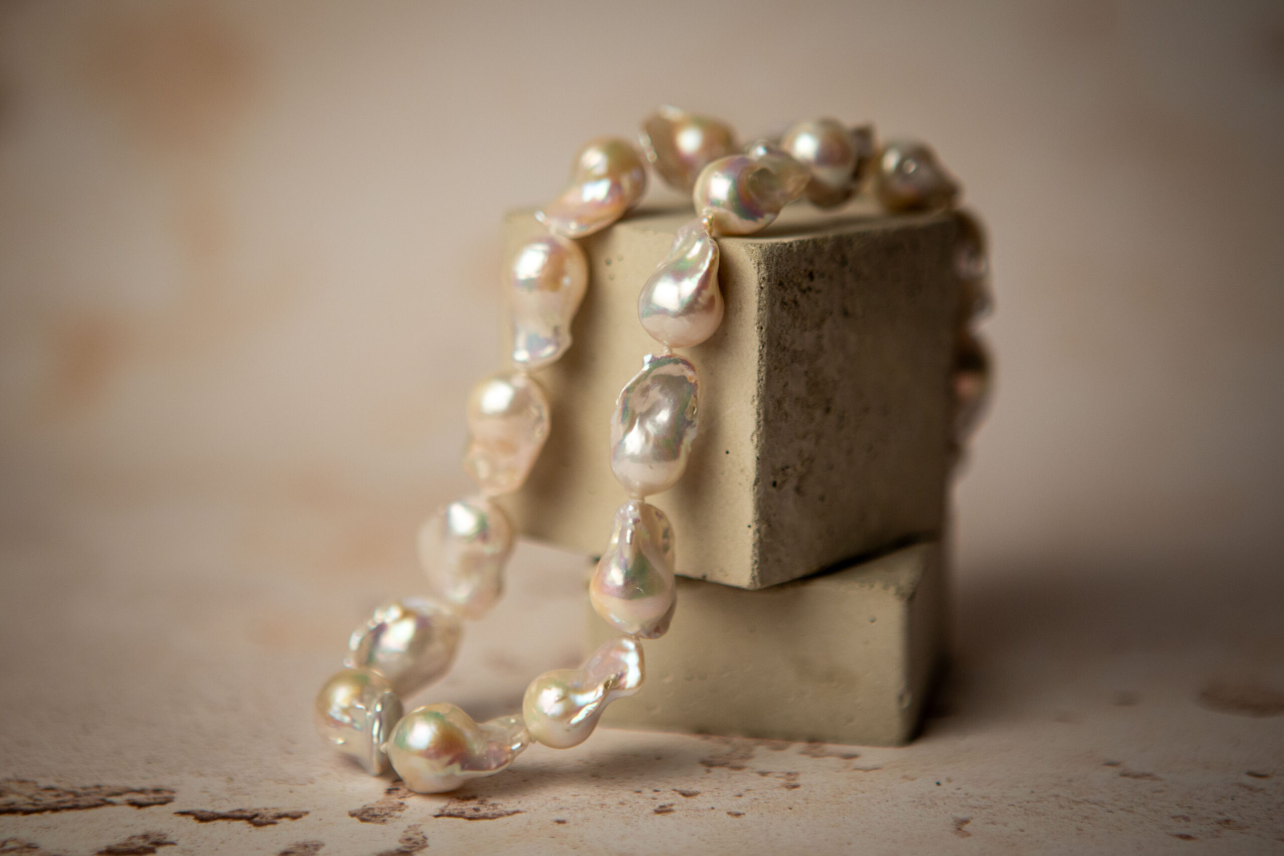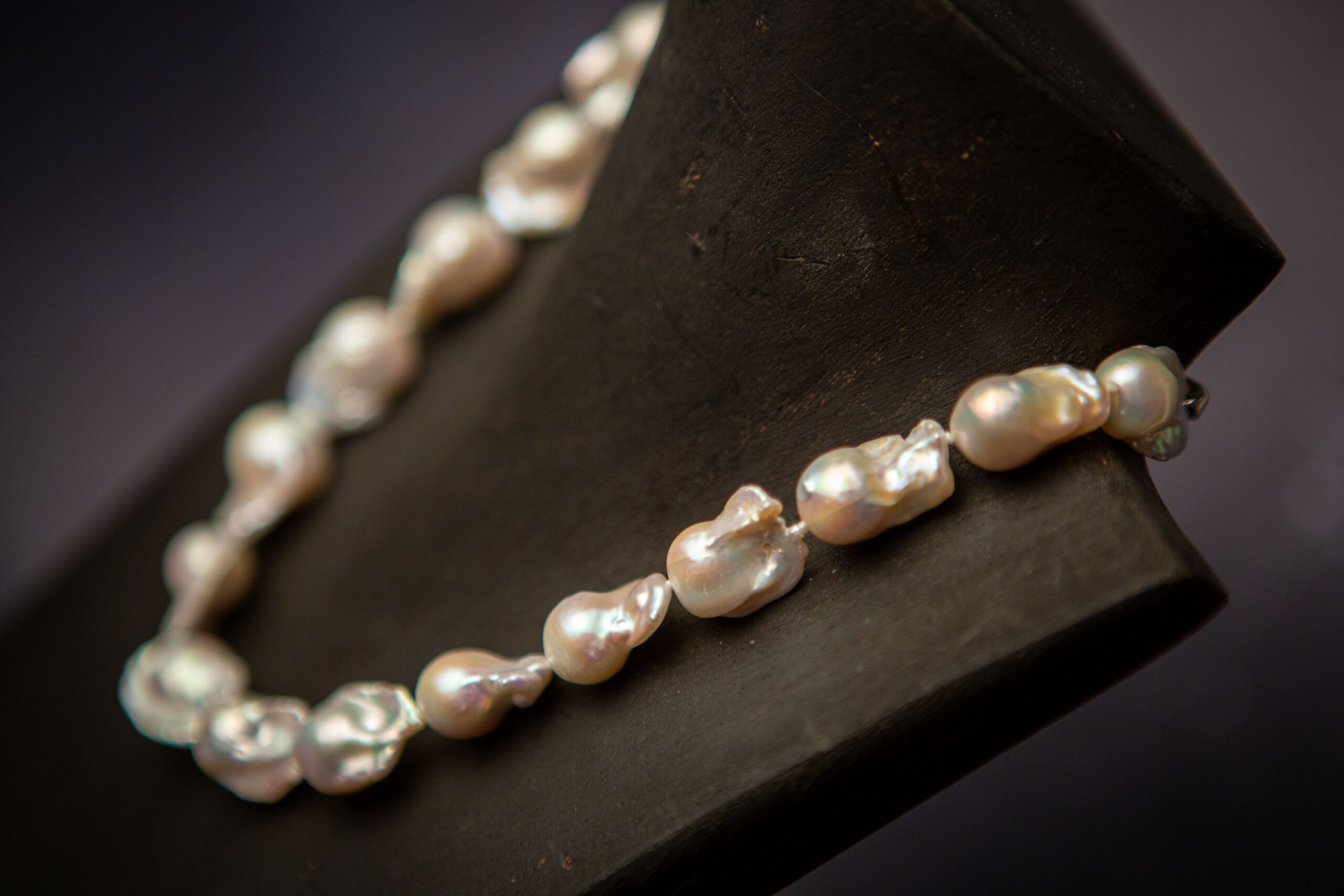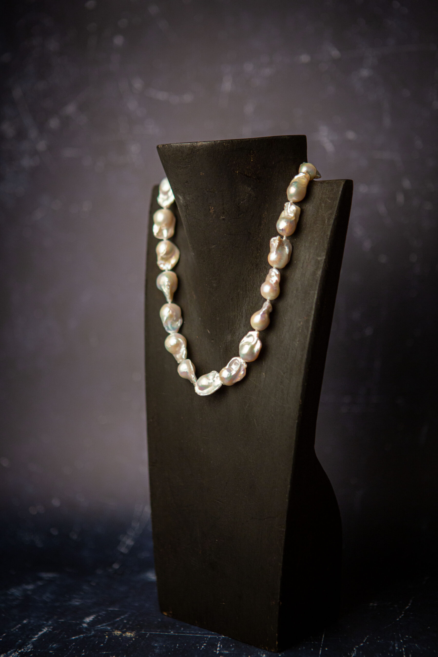 Pearls: baroque fresh-water 12-14 mm, hand-knotted
