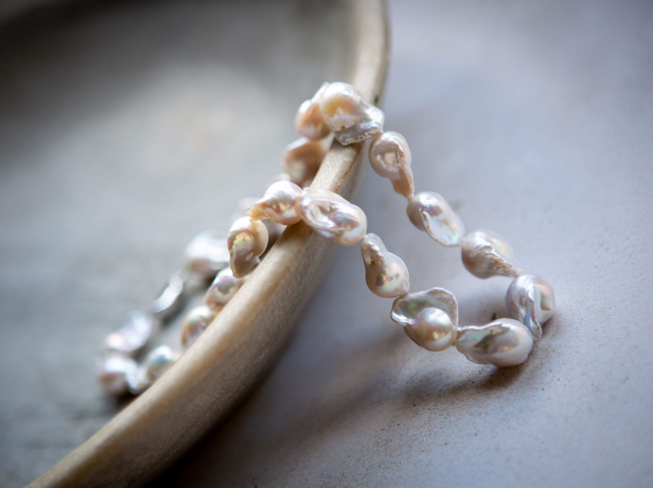These handpicked baroque pearls have been individually hand knotted using traditional pearl knotting techniques to create a charming and unique pearl necklace.