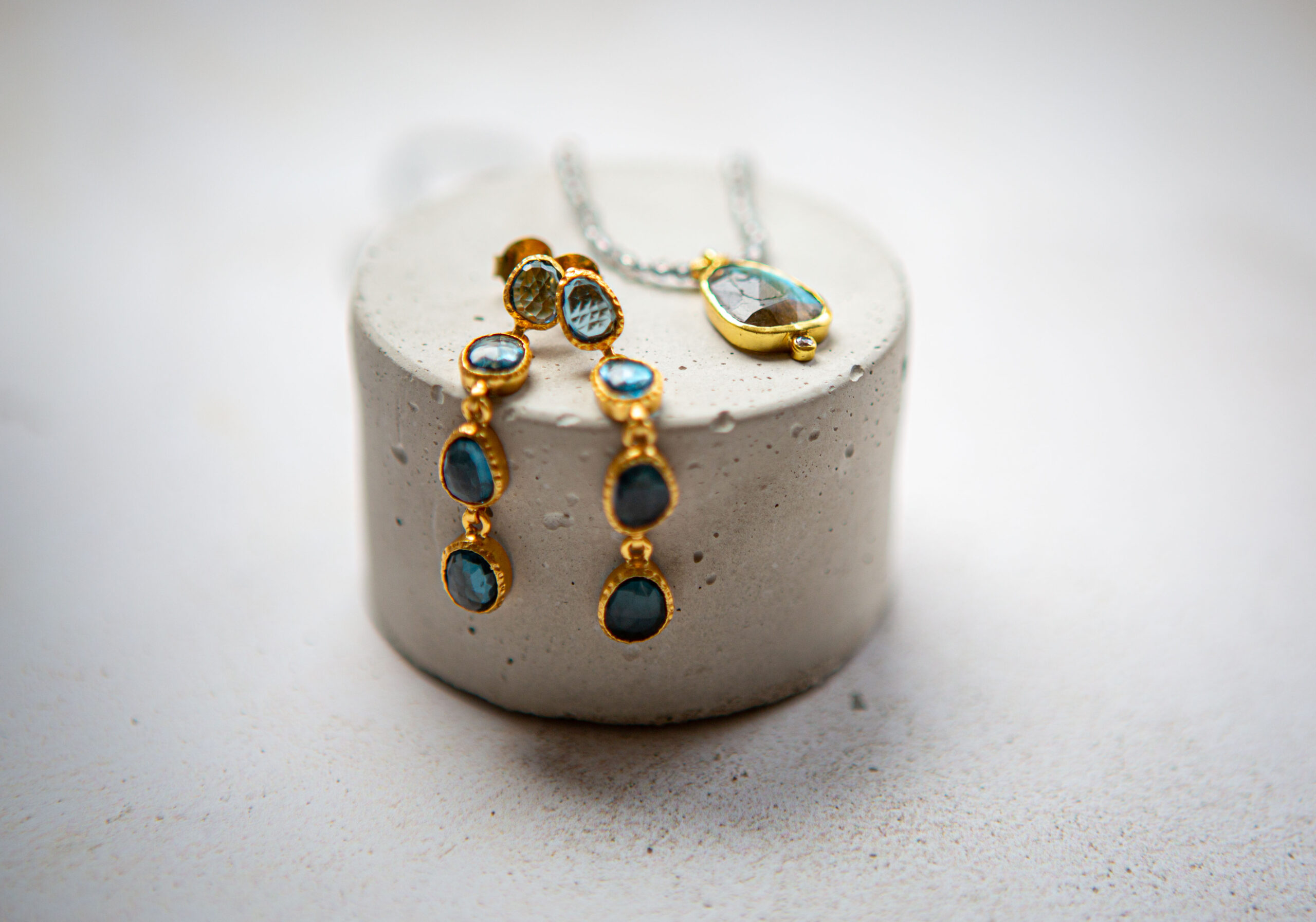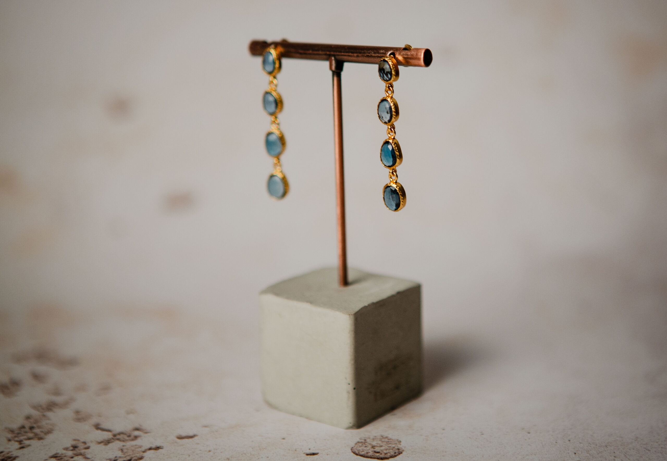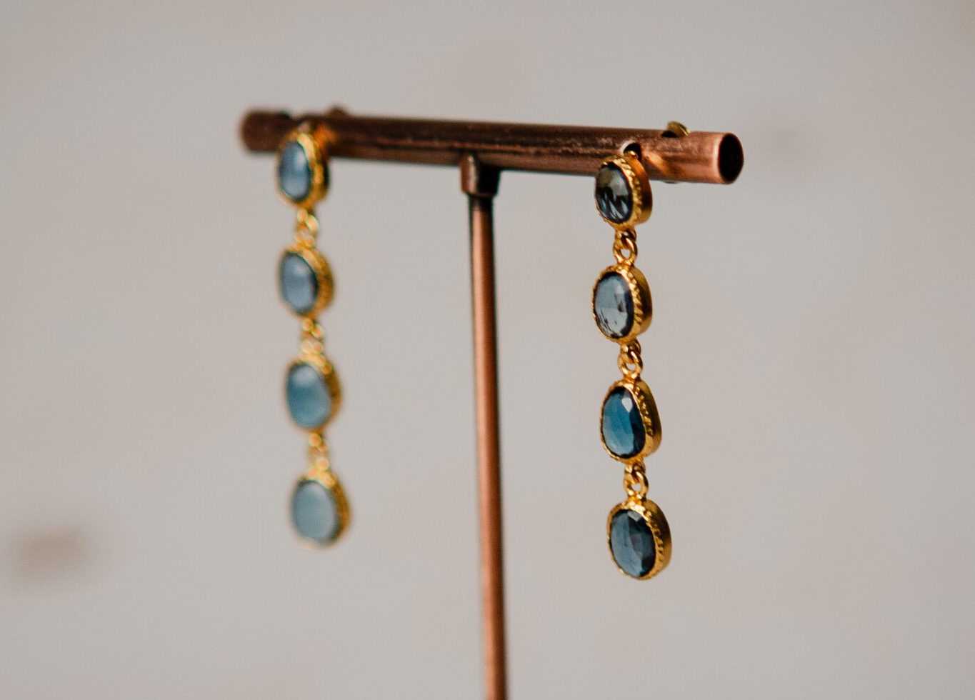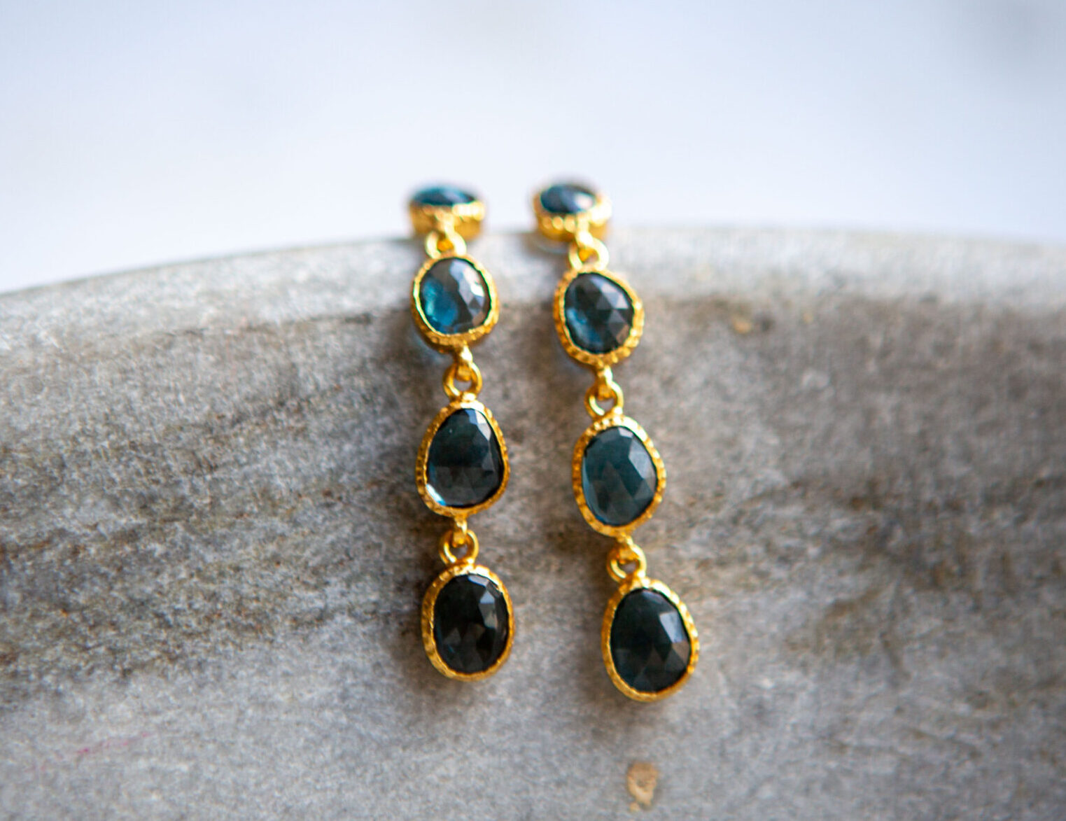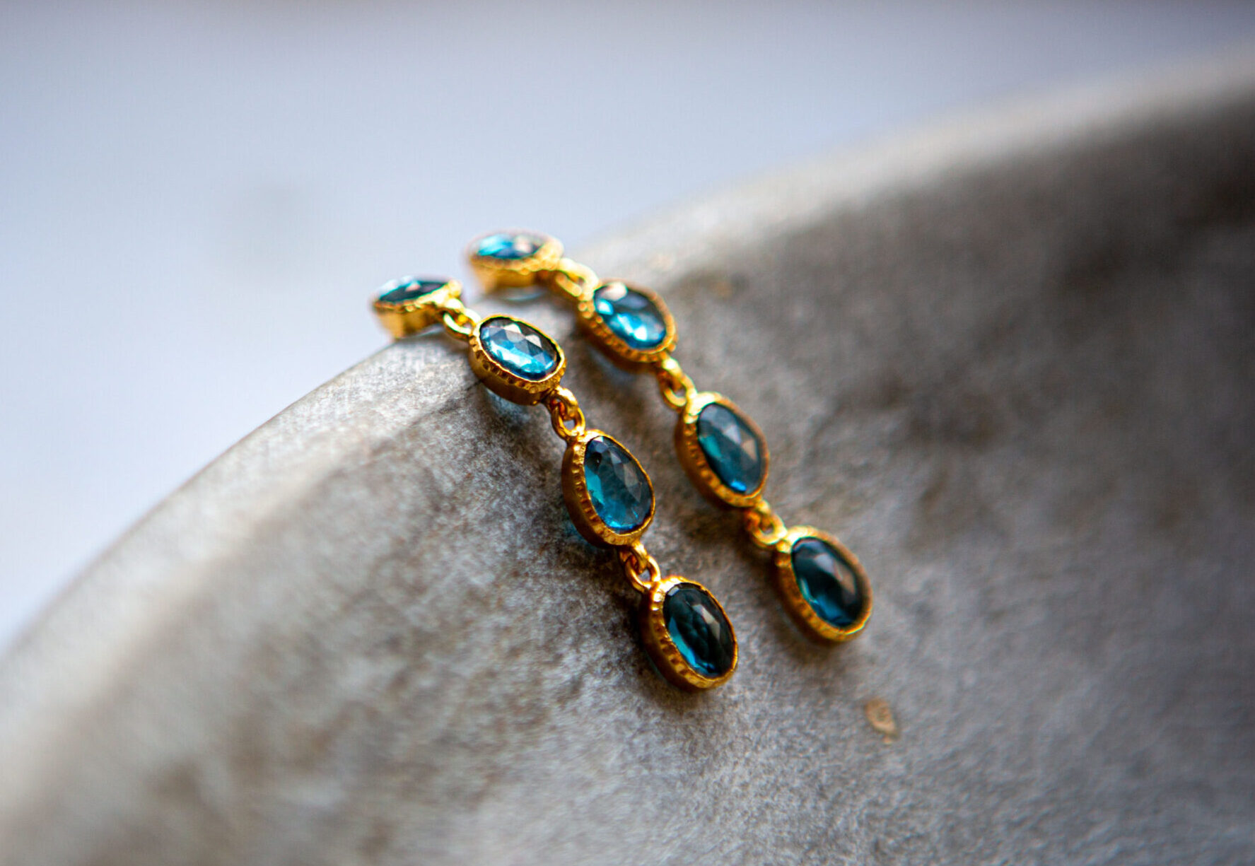 Blue topaz faceted drop earrings, gold vermeil