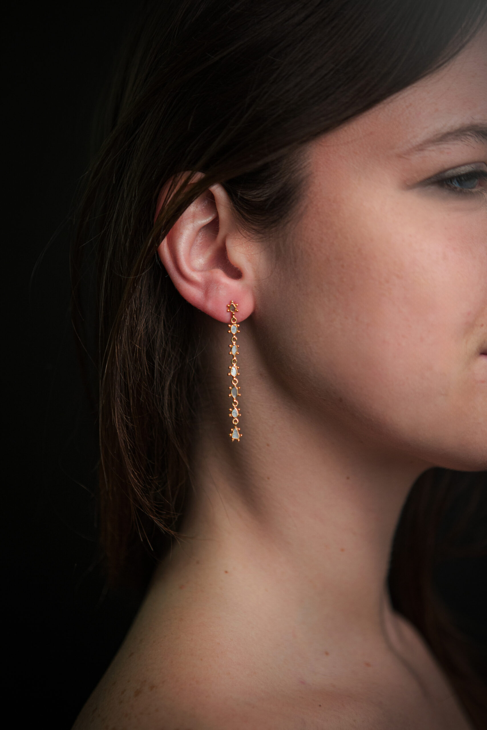 The organic and natural diamonds are not perfect diamond slices. This earring will come with internal imperfections, inclusions and fissures which add to the uniqueness of the product and enhance its organic design – these are not faults, we believe they make each piece even more special and add to their inherent charm.