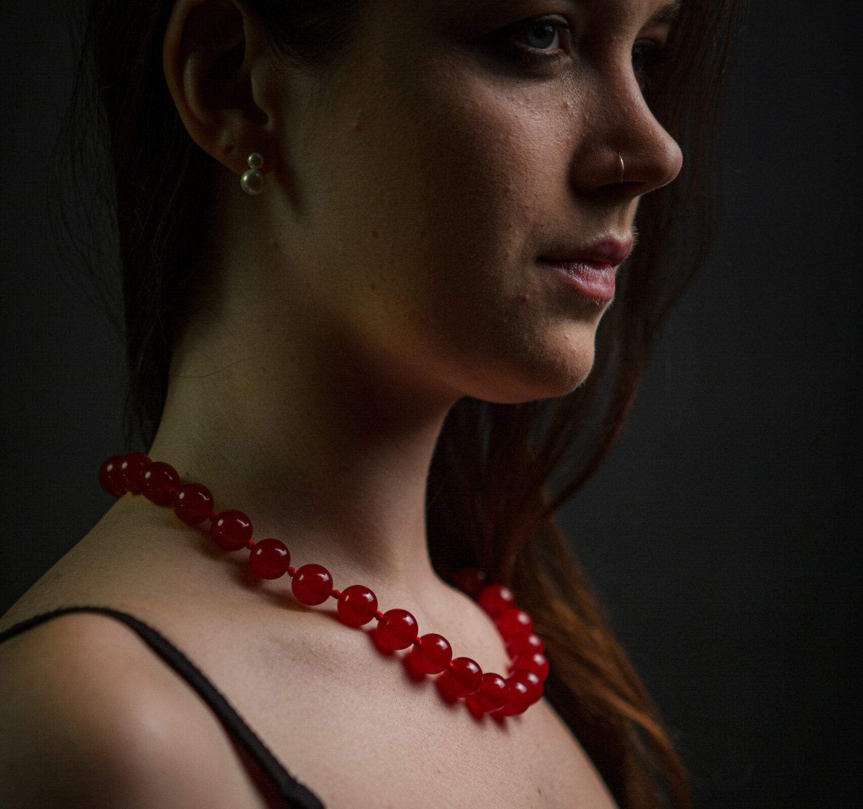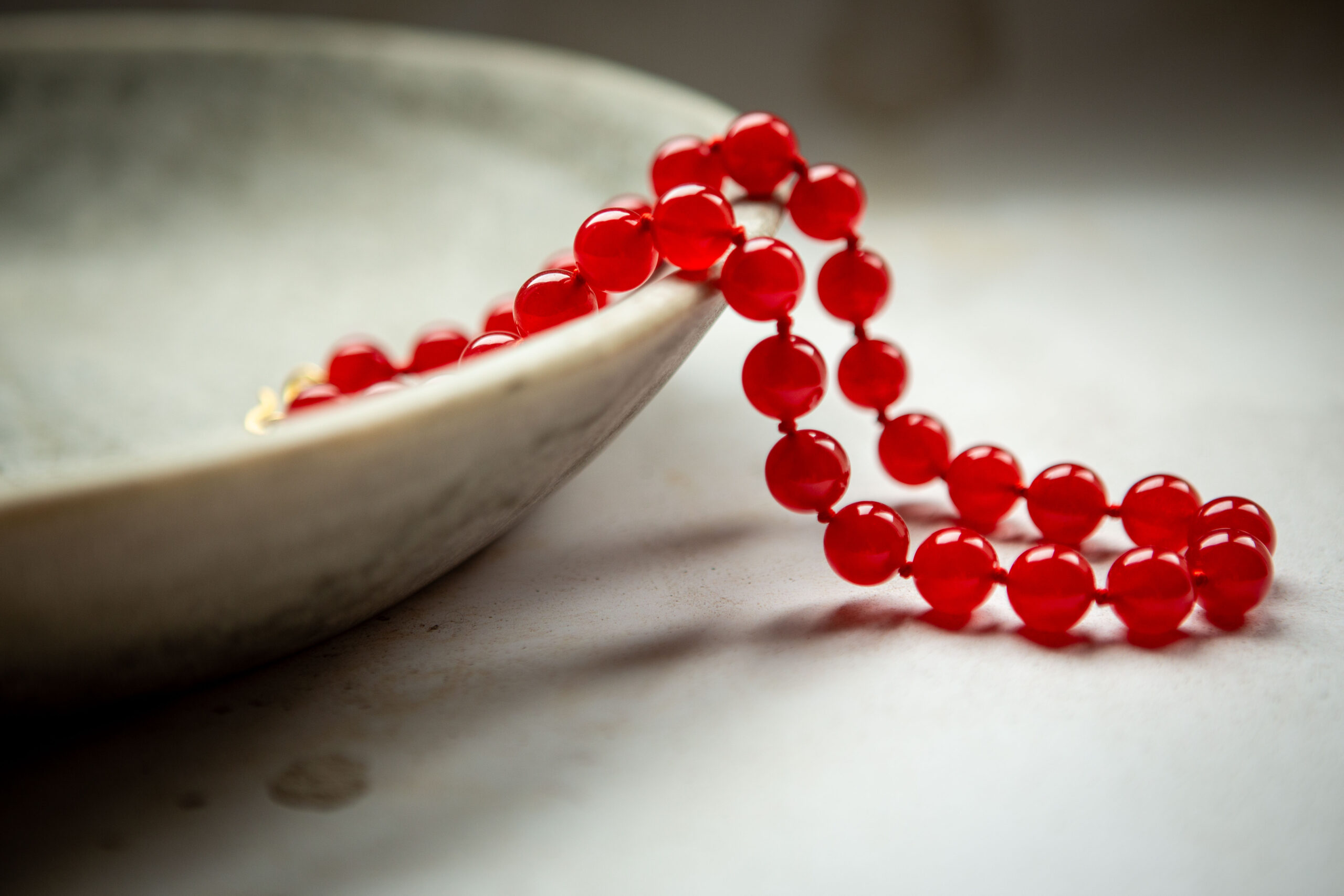 A fabulous drop of vibrant red coloured jade and a limited edition necklace